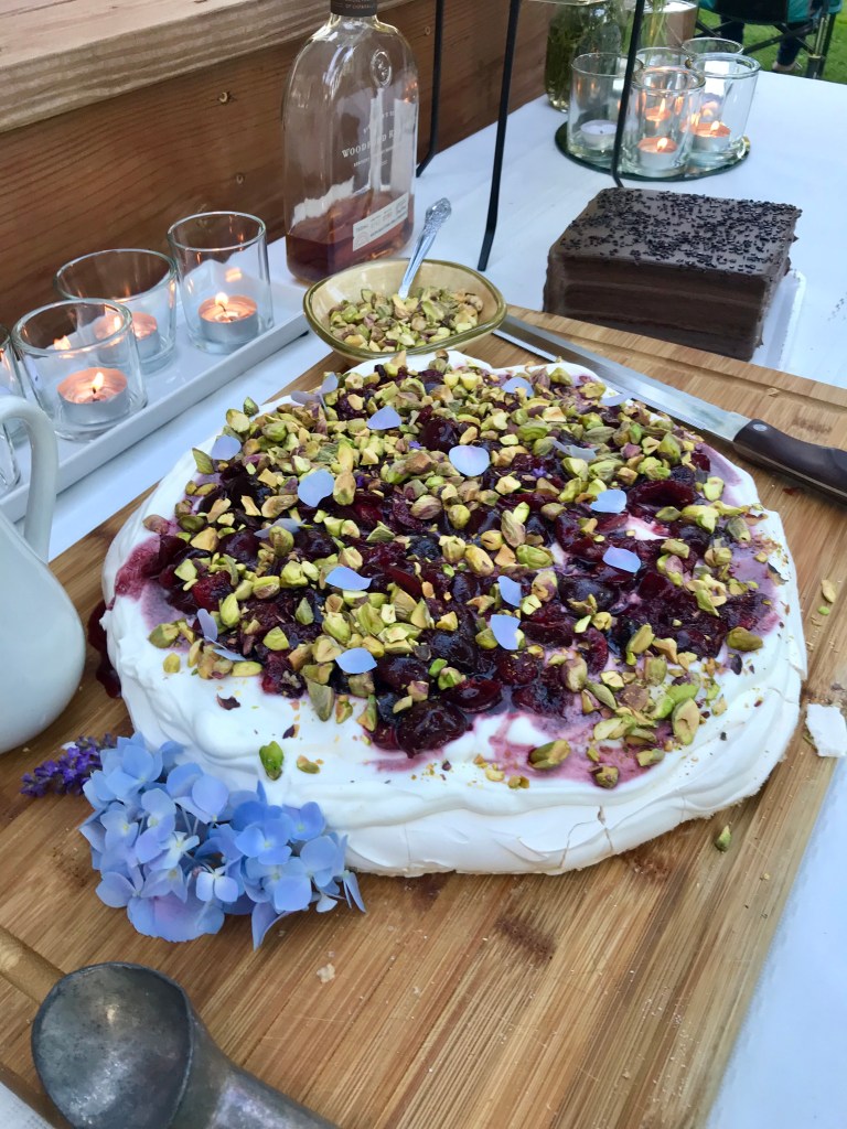 - If you’re making a Pavlova with a fruit topping, chop your fruit a day in advance to allow time for maceration. We chopped our cherries the day before serving and added less than a tablespoon of sugar, and a pinch of salt, to get their juices extracted.