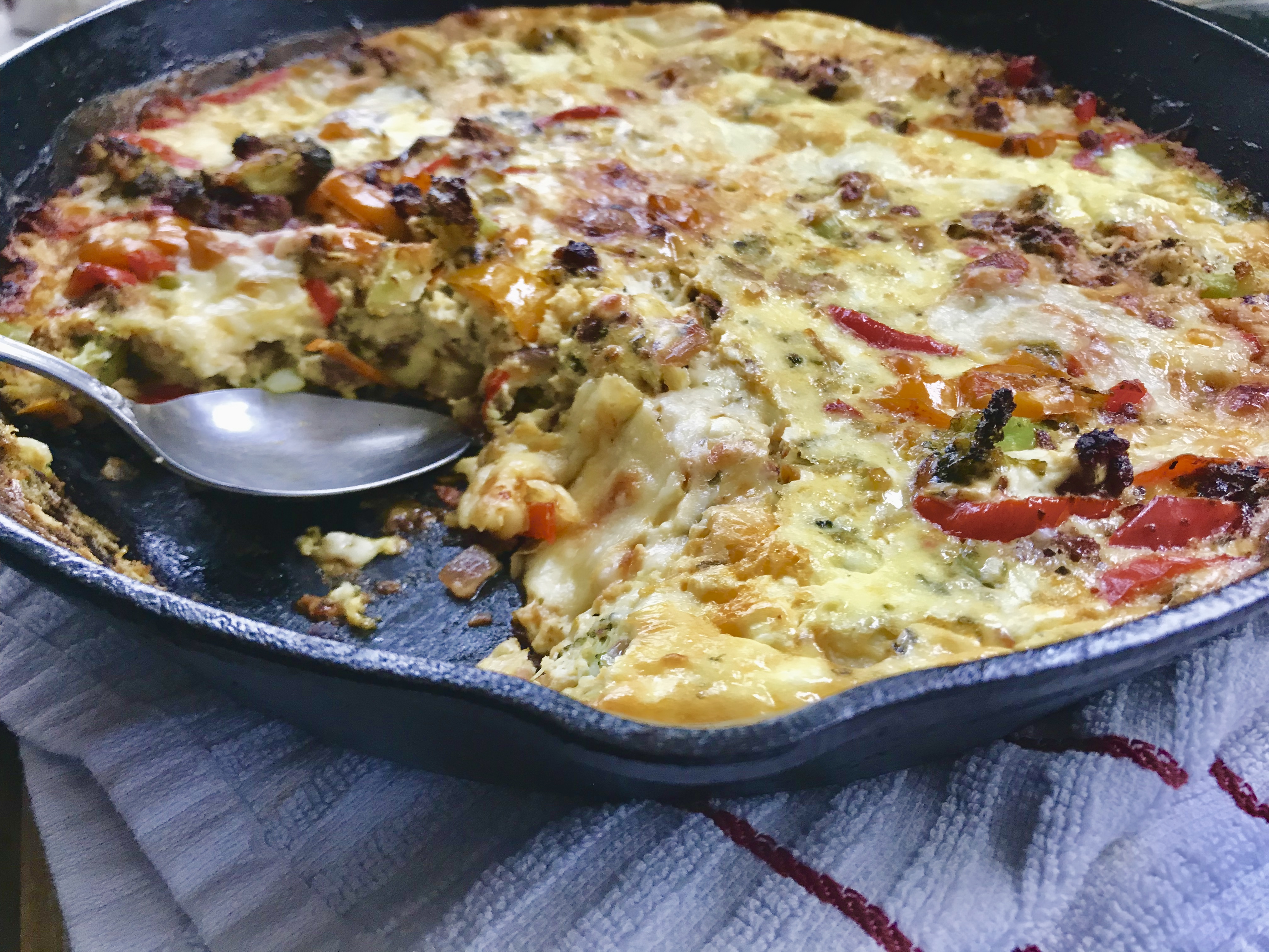 A wonderful way to “clean out your fridge”, a Frittata can be simple, containing only eggs, or filled with your favorite meats, vegetables, and cheeses. The Get Cheffy kitchen hits the middle ground (so we think), and adds one protein, two main vegetables, and a handful of aromatics to create an excellent lunch, dinner, or brunch dish. Bon Appetit, and Get Cheffy!